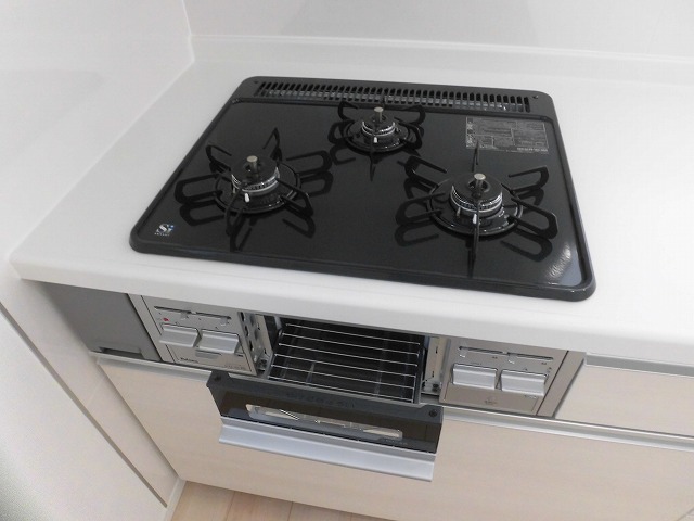 キッチンは料理が楽しくなるカウンタータイプでガスコンロ付き。バスルームには追い炊き機能や浴室乾燥機を備え、日々の暮らしを快適にサポートします。