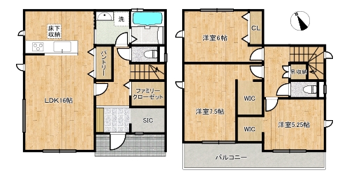 間取内容 | LDK16畳 1階 洋室5.25畳 2階 洋室6畳 2階 洋室7.5畳 2階 | ||