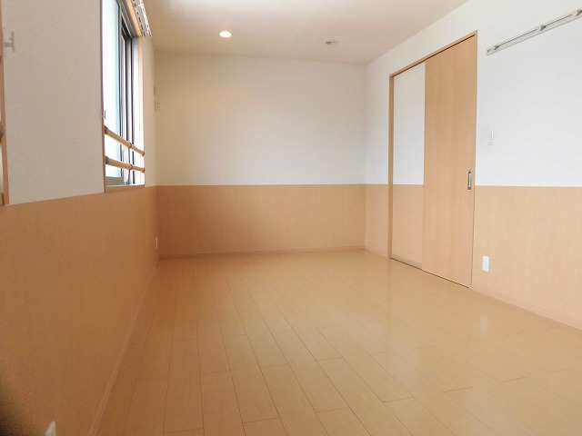 そして北側8.3帖の洋室はすごく広くて寝室としても余裕のある空間があります。壁一面のクローゼットはパイプハンガーだけでなく仕切り棚なども付いており小物類なども収納できます。