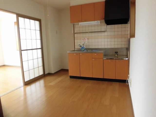 次にダイニングキッチンは5.7帖の広さがあります。キッチンは壁付けタイプなのでわりと広く使えそうです。キッチン横に窓があるのも、換気の面を考えると良さそうです。そして南側に6帖洋室が2部屋あります。もともと和室だったようで、部屋との間の段差が気になるのでご注意下さいませ。