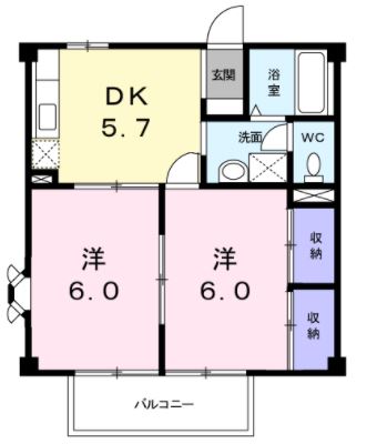 | 間取内容 | 洋室6.0畳 洋室6.0畳 DK5.7畳 | ||