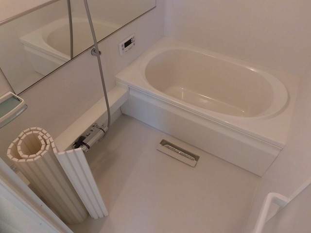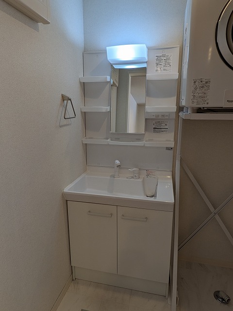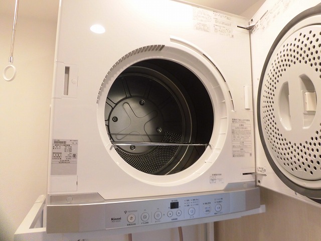 そして水回りは、洗面台はシャワー付き・お風呂は追炊きと浴室換気乾燥機付き・トイレは温水洗浄便座機能付きとなり、充実しています。さらに洗面室にはガス乾燥機の乾太くん(5キロタイプ)が備え付けられています。雨の日や花粉シーズンにも役立ちそうですね☆
