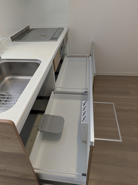 キッチンはIHクッキングヒーター付きシステムキッチンとなっており人気の対面式です。また、スライド収納なので使い勝手も良さそうです。