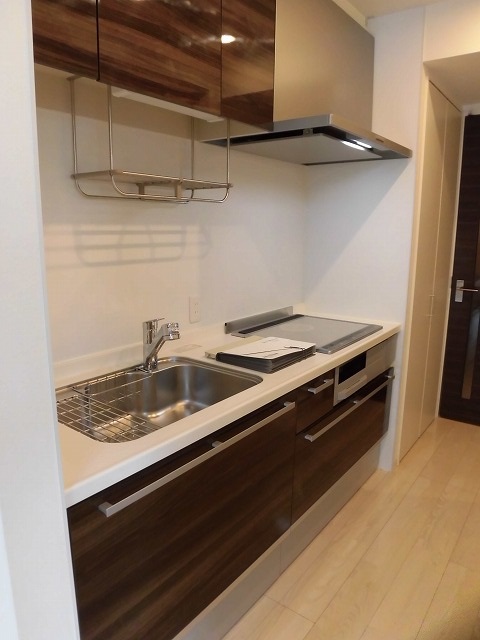 次にキッチンはIHクッキングヒーター付きのシステムキッチンです。スライド収納で使い勝手はとても良さそうです♪広めなのでお料理もお片付けも楽しくできそうです。
