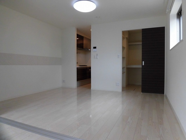 まず、洋室は7.4帖ありますがリビングと続きであるのでコンパクトな印象です。ただリビングとの引き戸を開けておくと部屋全体は広く感じられます。リビングにはウォークインクローゼットがあり上手に収納するとお部屋もすっきりできると思います。またリビングには東側にも小窓があるので、明るさも感じられます。