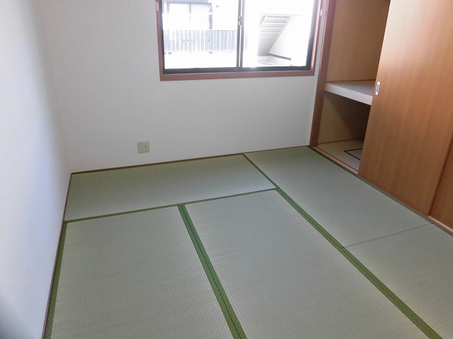 そして北側には6帖和室があります。ほっこりした畳のお部屋はぜひ寝室としてご利用されてはいかがでしょうか。ベッドを置くのももちろん良いですが、お布団にすると上げ下ろしは面倒ですがお部屋を広く使うことができます。押入れ収納ですが、奥行きが狭い所もあるのでご注意下さい。(写真をご確認ください。)