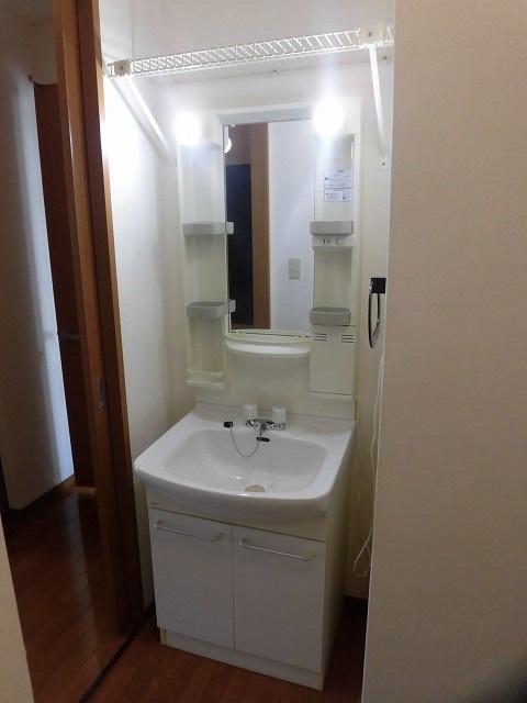 まず、玄関には上下分かれたタイプのシューズボックスがあります。靴を脱いで上がると左手に洗面スペースがあります。お風呂は追炊きがありますので、ご家族で入浴時間が異なっても安心ですね。洗面台はシャワー付きではないのですが、洗面台上には収納棚もあり使い勝手はよさそうです。