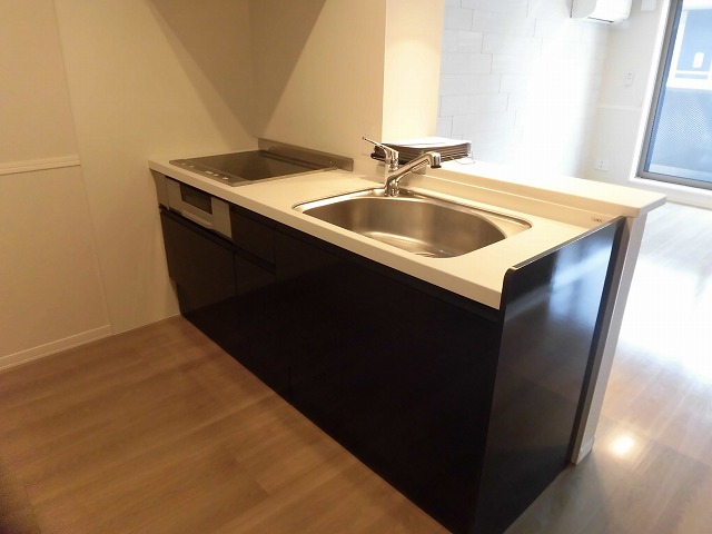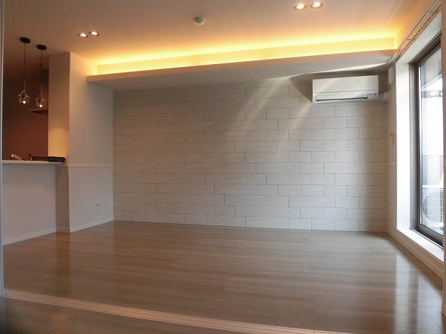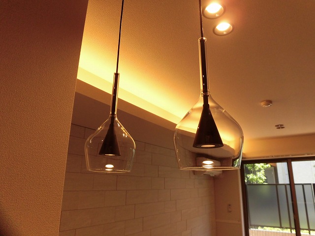 室内は、落ち着いた雰囲気の住空間に仕上げられています。リビングには間接照明やダウンライトが取り入れられており、やわらかな光が心地よい空間を演出します。キッチンは人気の対面式システムキッチンで、IHクッキングヒーター付きで使い勝手も良いと思います。
