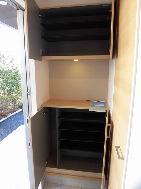 最後に、玄関ですがシューズボックスだけでなく、照明付きの土間収納があります。外で使うものなども収納可能で玄関周りをすっきりとできそうです★