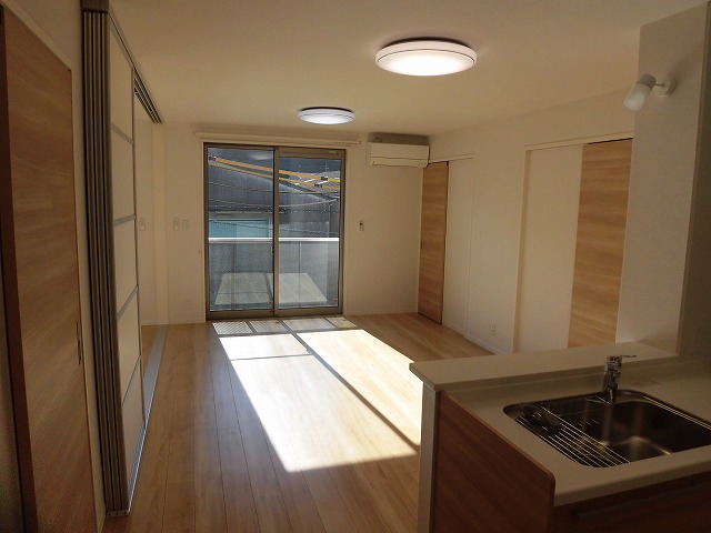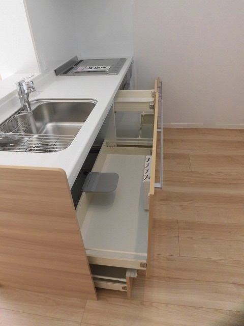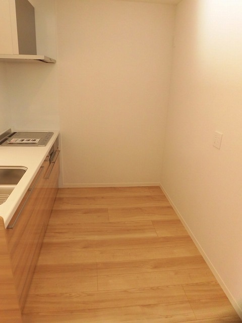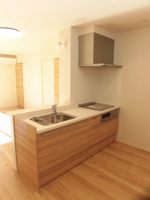 まず、リビングは12.1帖の広さがあります。キッチンはIHクッキングヒーター付きシステムキッチンとなり、スライド収納なので使い勝手も良さそうです。キッチン周りは広いので、キッチン仕事も苦にならずにできそうです★