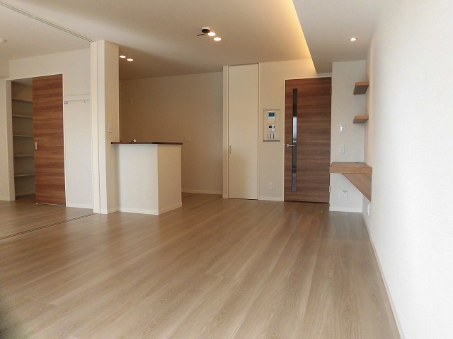 まずリビングは15帖の広さがあります。IHクッキングヒーター付きのシステムキッチンはスライド収納なので使い勝手も良さそうです。また間接照明がとてもおしゃれな空間を作り出しています。