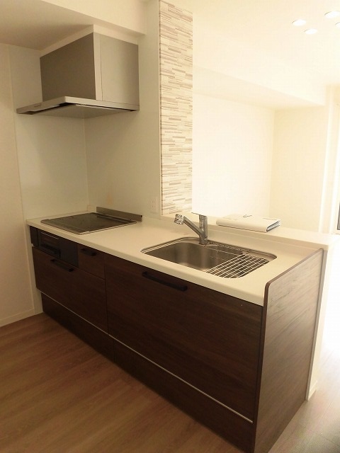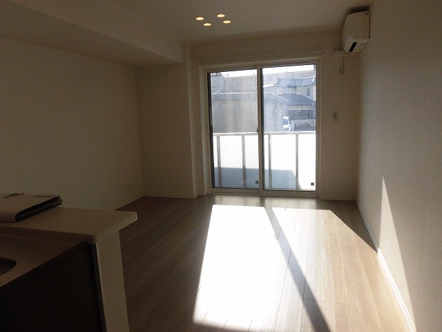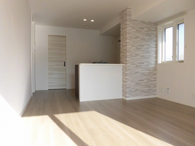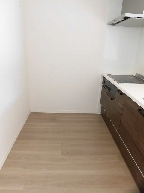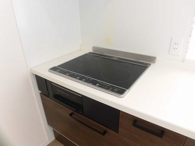 まずリビングは13帖の広さがあります。角部屋のため、南側だけでなく東側にも小窓があります。キッチンはIHクッキングヒーター付のシステムキッチンで人気の対面式です。またスライド収納となっており使い勝手も良いのではないでしょうか。