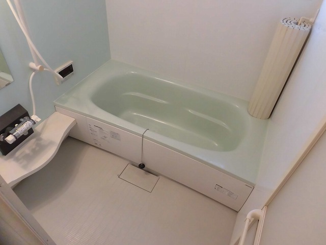 そして水回りについて、洗面台はシャワー付き・浴室は追炊きと浴室換気乾燥機付きの一坪風呂となります。トイレは温水洗浄便座機能付きです。