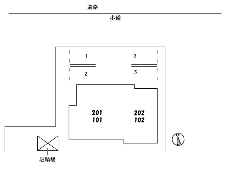 各階2世帯、合計4世帯のアパートとなります。共用部には防犯カメラ・宅配ボックスも設置予定です。