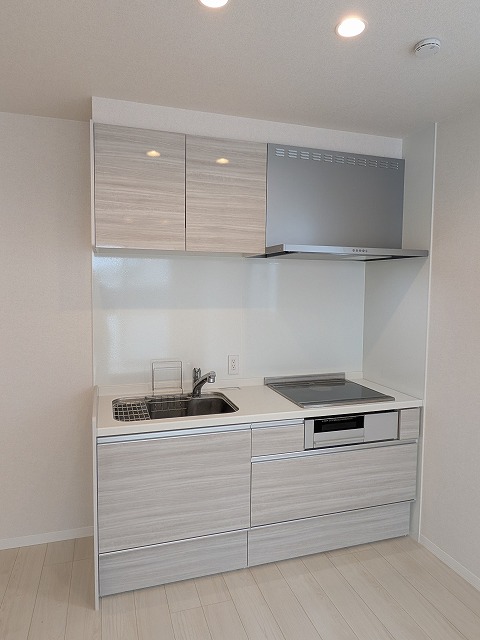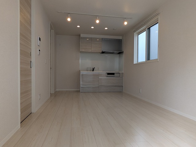 まずリビングは10.3帖の広さです。キッチンは壁付けタイプなのでお部屋をより広く使うことができます。またIHクッキングヒーター付きシステムキッチンになります。南側だけでなく東側にも窓があり明るいお部屋です。ただ、東側窓からは隣にマンションがあるので眺望はありません。