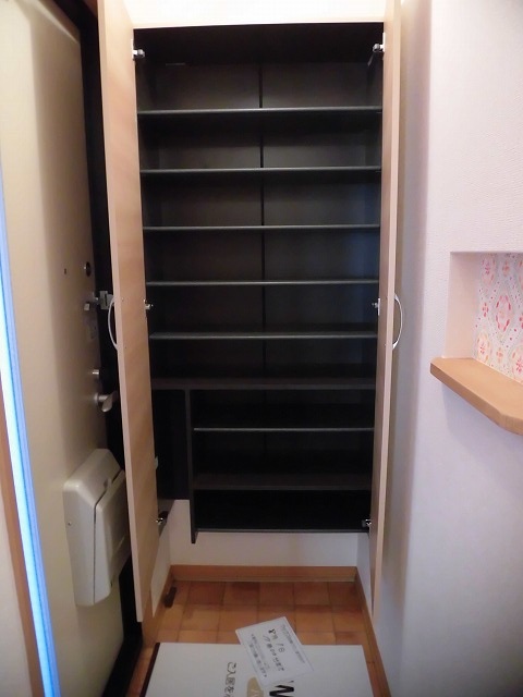 その他、玄関のシューズボックスがトールタイプのものになり、靴もたくさん収納可能になっています。玄関周りがすっきりとできるのではないでしょうか。