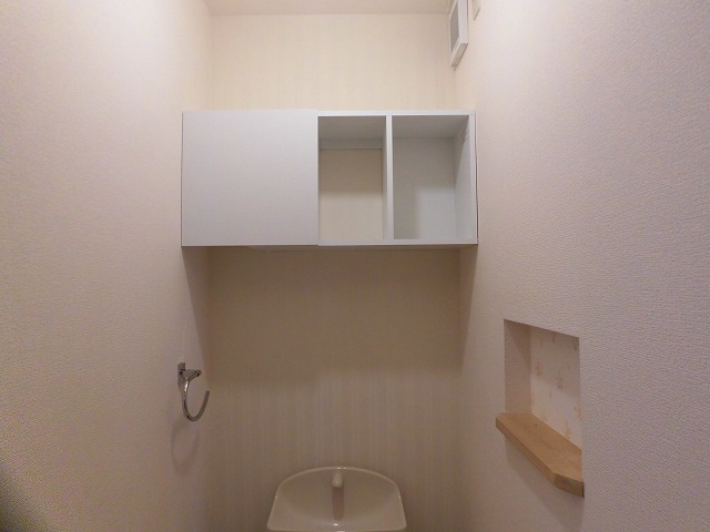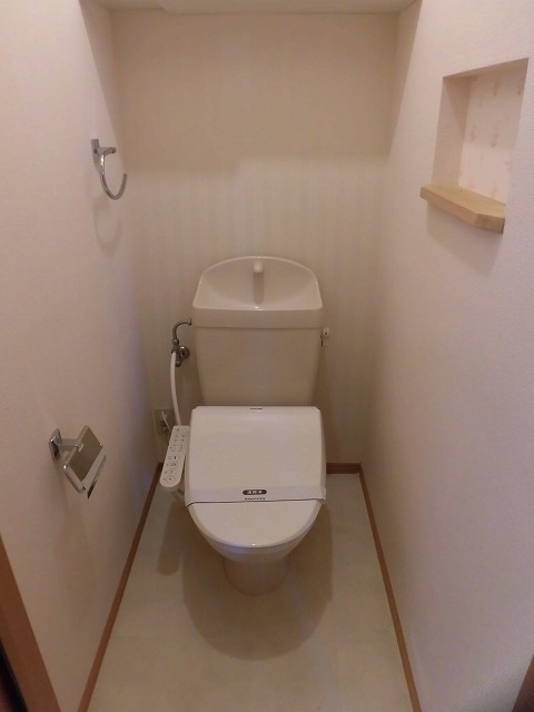 そして水回りは、洗面台はシャワー付き・浴室は追炊き付きです。浴室の蛇口がサーモスタット混合栓へと変更されており、温度調節も簡単です。トイレは温水洗浄便座機能付きです。トイレは収納棚が新設されました★