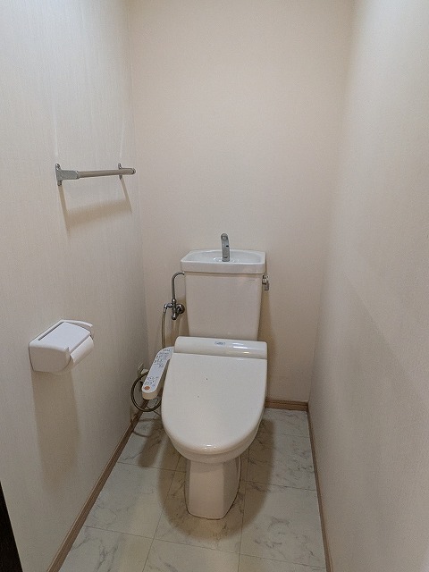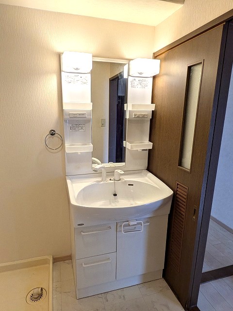 そして水回りは、洗面台はシャワー付き・トイレは温水洗浄便座機能付きです。浴室には追炊きなどの設備はありませんが、サーモスタット混合栓で温度調節しやすくなっています。2025