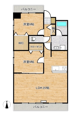 | 間取内容 | 洋室6.0畳 洋室6.0畳 LDK20畳 | ||