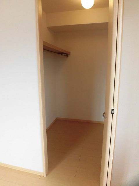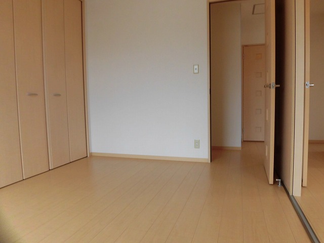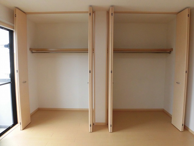 次に、南側洋室はリビング側からも廊下が側からも出入りが出来ます。引き戸を開けておくと解放感がありますので、状況に応じて開閉するのも良いですね。また西側の壁一面がクローゼットになっています。お隣さんとの接地面がこの部分だけというのは音の面でも考えられている間取りとなっています。収納力もしっかりとあります!