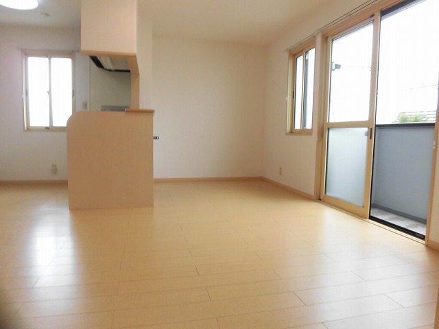 まず、リビングは対面式のキッチンです。キッチンスペースが余裕のある分、正直カウンター前が少し窮屈かなといった印象があります。でもキッチンは収納力もあり使い勝手が良さそうです(*^-^*)。またキッチンの東側には小窓もあり換気もしやすそうです。