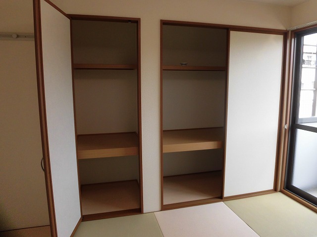 次にリビング横には6帖の和室があります。(※2021年に写真を撮った際は洋風畳だったのですが、変更になる場合もあります。)奥行のある押入があります。