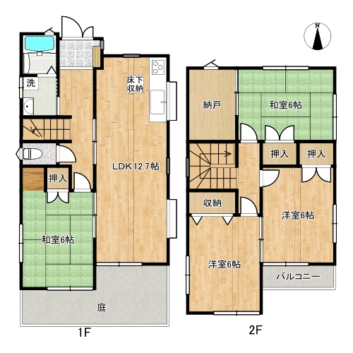 | 間取内容 | 和室6畳 和室6畳 洋室6畳 洋室6畳 LDK12.7畳 | ||