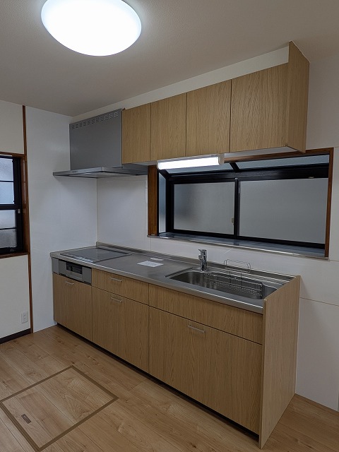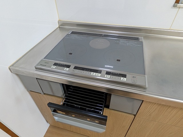 また、水回りが1階にまとまっている点も、日々の家事動線を考えると嬉しいポイントです。キッチンはIHクッキングヒーター付きのシステムキッチンで、お手入れもしやすく快適にお使いいただけます。床下収納も備わっており、食品のストックなどの収納にも便利です。さらに、浴室には追焚き機能、トイレには温水洗浄便座、洗面台はシャワー付きと、毎日の生活を支える設備も整っています。
