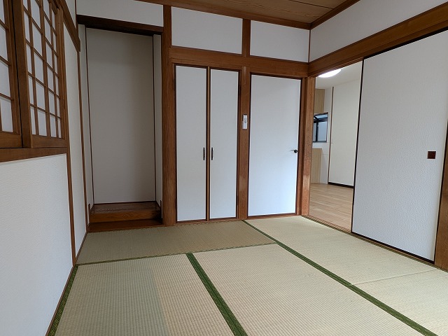 次に2階には、南側に6帖の洋室が2部屋、北側には6帖の和室がございます。ご家族それぞれのお部屋をしっかり確保できるため、子ども部屋や寝室、書斎など、ライフスタイルに合わせた使い分けが可能です。特に和室には広めの納戸が付いており、季節物や思い出の品などの収納にも役立ちます。