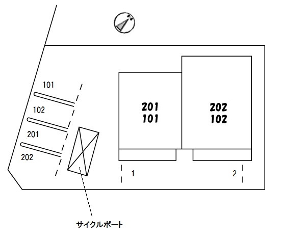各階2世帯で2階建て4世帯です。201号室は2階角部屋となっています。