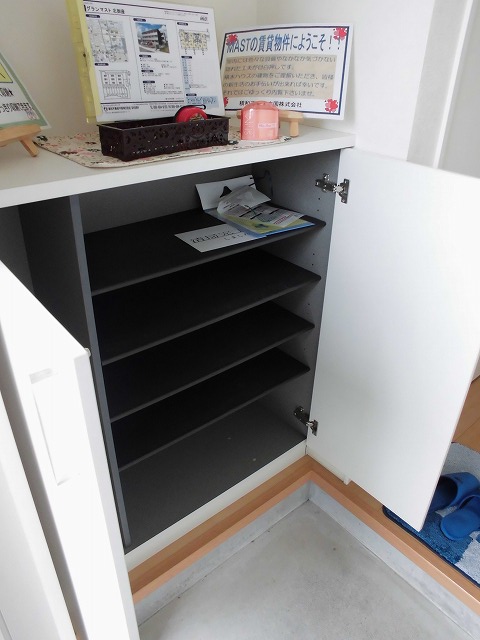 まず、玄関の鍵は鍵穴が2つあるダブルロックキーとなっており防犯面にも優れています。廊下には仕切り棚がついた収納スペースがあります。そこまで奥行きがあるわけではないのですが、高さ調節も可能なので家族共有のものや外で使うものなど収納できそうです。